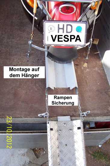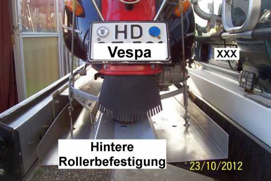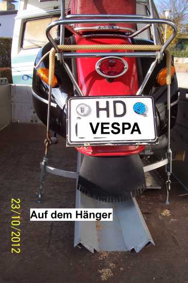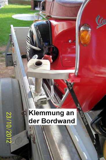 insperiert durch deinen Beitrag habe ich die kalte Jahreszeit genutzt um in der warmen Werkstatt dafür zu sorgen dass du nicht alleine mit ´nem Roller als Beiboot rumfahren mußt und hab ne Vespa Primavera 125 BJ 1977 komplett zerlegt und Motor neu gelagert und abgedichtet, Bremsen, Kupplung, Züge, Tank, Stoßdämpfer usw. erneuert, den original-Lack aber erhalten. Jetzt schau ich mir mal ganz genau die Bilder deiner "Befestigungs-Vorschläge" an und komme gegebenfalls auf dich zu wenn ich noch Fragen habe. Freu mich schon auf ne gemeinsame Ausfahrt bei irgendeinem Treffen.