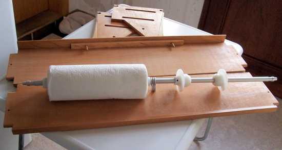 Eine Alu-Rohr wurde als Papierrollen Halter konzipiert und mit gefederten Steckbolzen versehen, zum leichteren Wechsel der Rollen.
