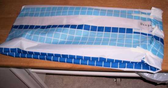 Einen Schutz habe ich noch aus einem übrigen Duschevorhang genäht und mit Klettverschlüssen versehen.
