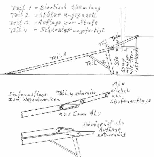 Auch ist der Alu-Winkel am Auflagebrett zur Gewichtsaufnahme wichtig.