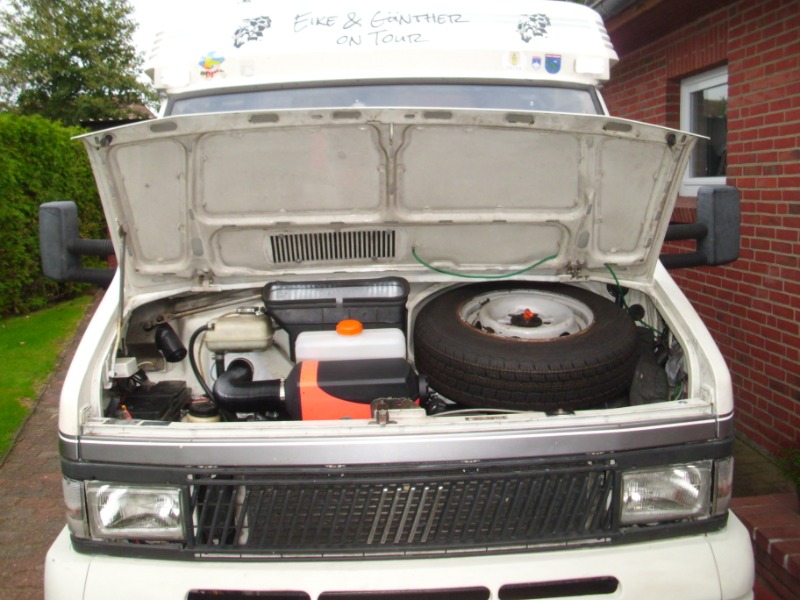 mir eine Chinesische Dieselheizung mit 5 KW Leistung eingebaut. Diese Heizung soll aber nur als Zusatzheizung dienen, die Truma bleibt natürlich drinnen. Ich habe die komplette Heizung so im Motorraum montiert, das ich sie z.B. für den Tüv (Heizung hat leider keine Zulassung, naja Kaufpreis 110Euro ) oder im Sommer wenn ich sie nicht brauche innerhalb einer 1/2 Stunde ausgebaut bekomme. Ich muss sagen bis jetzt bin ich begeistert von dem Teil :daumen2: