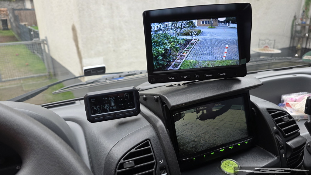 Also musste ein neues Kamerasystem her. Da das Radio während der Fahrt für die Navigation benötigt wird, musste das Kamerasystem einen eigenen Monitor haben. Es wurde ein Rückfahrsystem mit Doppelkamera von Carmedien. Nun ist es verbaut und das Ergebnis ist ein Unterschied wie Tag und Nacht. Eben 20 Jahre moderner.