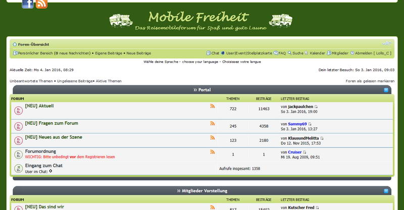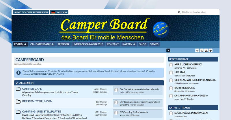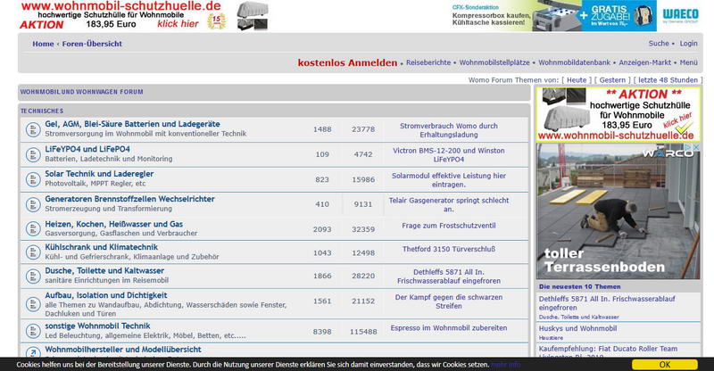 Auflistung verschiedenster Internet-Foren zum Thema Wohnmobil und Reisen.