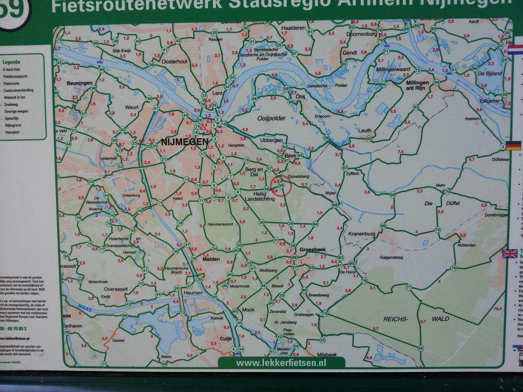 Natürlich kann man bei den VVV-Büros auch eine Karte zum Mitnehmen für unterwegs erwerben oder die Karten über die Internetseite www.lekkerfietsen.de für die Region Arnhem Nijmegen herunterladen und ausdrucken bzw. auf dem Handy speichern.