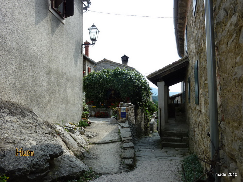 Hinter Buzet schwenkten wir nach rechts auf die 201 ein, der wir über Roc in Richtung Autobahn A8 folgten. In Roc zweigt eine kleine Straße nach Hum, der kleinsten Stadt Kroatiens ab, der ich natürlich, trotz heftigster Einwände von Inge, einen Besuch abstatten musste. Wieder zurück auf der Strecke war die Anschlussstelle zur A8 schnell erreicht, die uns dann doch noch kurz vor dem Ziel Maut für den 5062 m langen Ucka Tunnel abverlangte. Nach der Tunneldurchfahrt, die in luftiger Höhe hoch über dem Meeresspiegel endet,