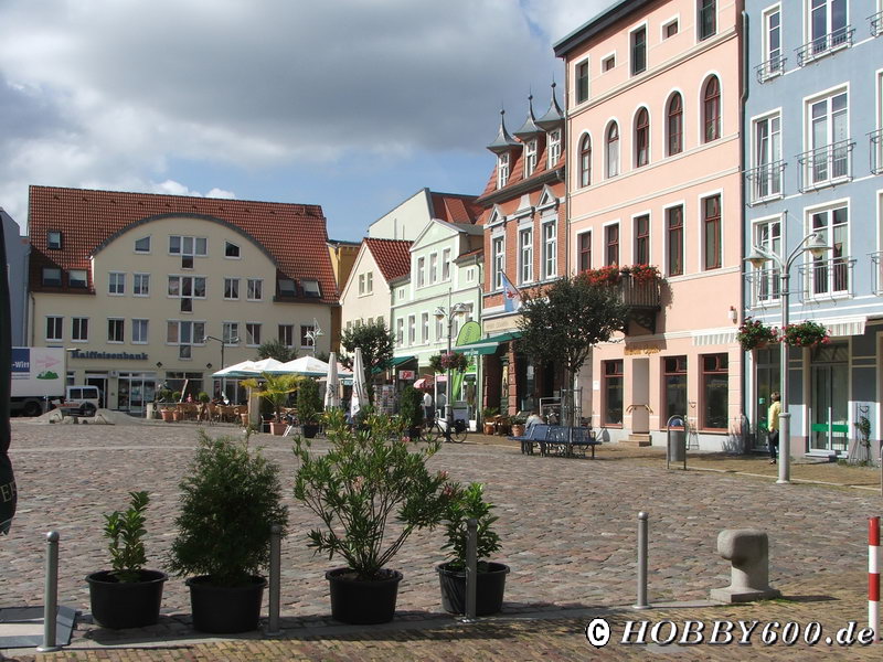 Unser nächstes Ziel war Ueckermünde. Wir parkten unser Gespann am Hafen und schlenderten in die kleine, aber feine Altstadt; immer auf der Suche nach Fischbrötchen. In einem alten Kutter wurden wir fündig und die Zwischenmahlzeit war gerettet.