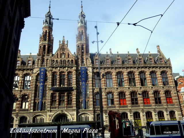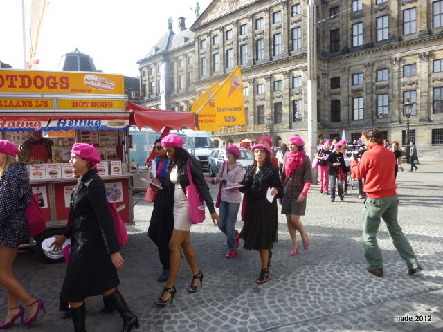 Eine ganz andere Welt begegnet man auf dem Großen Platz Dam, dessen Mittelpunkt das Denkmal der Befreiung und des Friedens bildet (Bild 38). Umsäumt von ehrwürdigen Bauten wie das Koninklijk Palais (Bild 39) oder dem Einkaufszentrum Magna Plaza (Bild 40), dient der Platz auch als Aufmarschfläche für Demonstrationen (Bild 41), deren Anliegen sich uns trotz eindeutigem Verhalten nicht ganz erschloss (Bild 42).