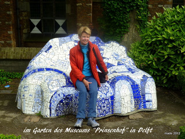 Immer noch hinreichend Zeit bis zum Treffen in Berkhout, steuerten wir als nächstes Ziel, das vor allem für sein im Delfter Blau (Bild 24) bemalte Porzellan Weltruhm erlangte. Doch zunächst führte unser Weg ins Zentrum, wo ein riesiger Markplatz von einem prachtvollen Renaissance-Rathaus (Bild 23), der Nieuwe Kerk, in deren Gruft die Mitglieder des Hauses Oranien beigesetzt sind, und ehrwürdigen, ehemaligen Kaufmannshäusern eingerahmt wird. Etliche Straßencafés und Restaurants verleihen dem Platz ein fast schon südländisches Flair. Beim kurzweiligen Spazieren entlang der Grachten, zur Oude Kerk mit ihrem schiefen Kirchturm und einer Rast im Garten des Prinsenhofs (Bild 26) - heute Museum - erschließt sich Delft seinem Besucher als sehenswerte Stadt. Selbstverständlich gehörte auch für uns ein Besuch der ROYAL DELFT Porzellan Manufaktur zum Pflichtprogramm (Bild 25).