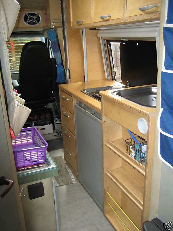 th_balt_3.jpg Die Hängeschränke sind in diesem Fahrzeug  anders aufgeteilt und mit Jalousien verschlossen.So können nun  auch Töpfe und Schüsseln untergebracht werden. Die Lichtleiste ist entfernt und durch eine moderne Leuchstoffleuchte ersetzt.    Insgesamt macht der Küchenblock auf mich einen hellen und aufgeräumten Eindruck!