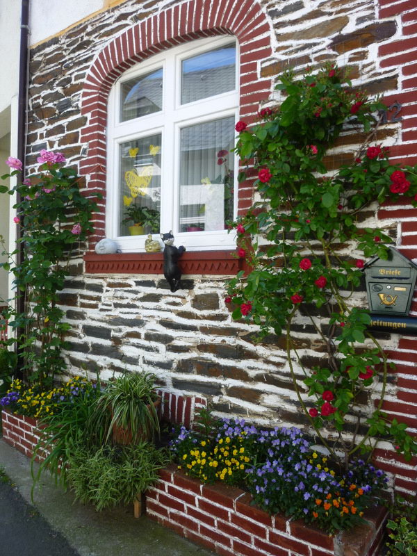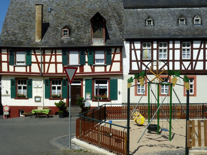 Zurück ins Städtchen. Neben den vielen beschaulichen Details machen auch die fein heraus geputzten Fachwerkhäuser auf sich aufmerksam und laden den Besucher zum Verweilen und betrachten ein. Dazwischen eröffnen sich immer wieder fantastische Ausblicke auf die Weinberge, die sich über fünf Seitentäler bis in die waldbedeckten Hügel des Hunsrücks ziehen