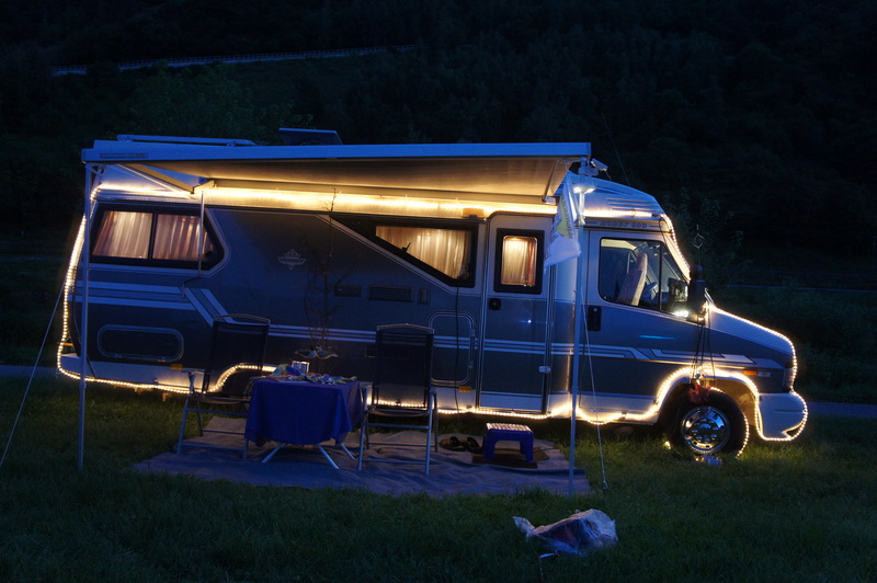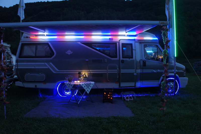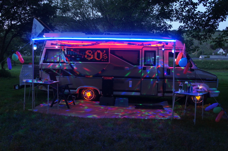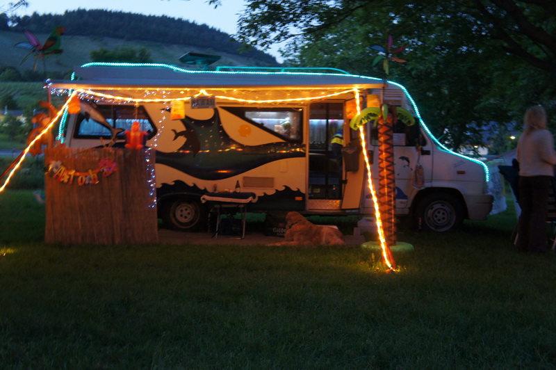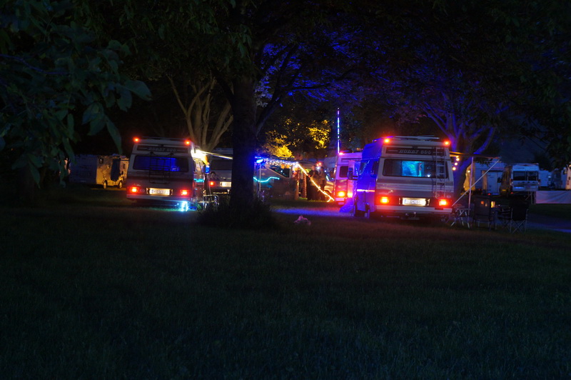Für das Lichterfest hatten viele Teilnehmer ihren Hobby 600 effektvoll beleuchtet. So geriet bei einsetzender Dunkelheit der Bummel durch die Fahrzeuge zu einer Mischung aus Weihnachtsmarkt und Kirmes. Das Modell einer Jahrmarktorgel lieferte den passenden Sound. Die Disco und die Hawaii-Bar waren natürlich am längsten belagert..