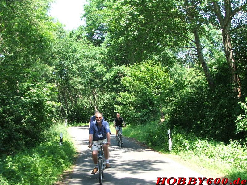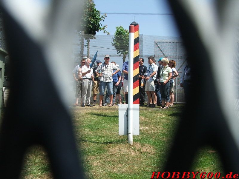 Anschließend ging es zunächst zum Grenzmuseum. Während der Großteil der Teilnehmer mit dem Fahrrad fuhr, brachte ein Sammeltaxi die „Fußkranken“ im Pendelverkehr ans Ziel. Am Grenzmuseum traf man sich wieder. Die einen stiegen entspannt aus dem Transit, die anderen keuchten doch ganz schön; 13% Steigung sind selbst für manchen Westerwälder zuviel. Nach einer kurzen Verschnaufpause begann der Museumsbesuch. Wenn man bedenkt, dass das, was uns die Zeitzeugen erzählten und was wir an Bildern und Dokumenten sahen, noch gar nicht so lange her ist, dann wir man sehr nachdenklich. Als die ersten unserer Hobby 600 gebaut wurden, war Europa noch geteilt, wurde an der Grenze auf Menschen geschossen.