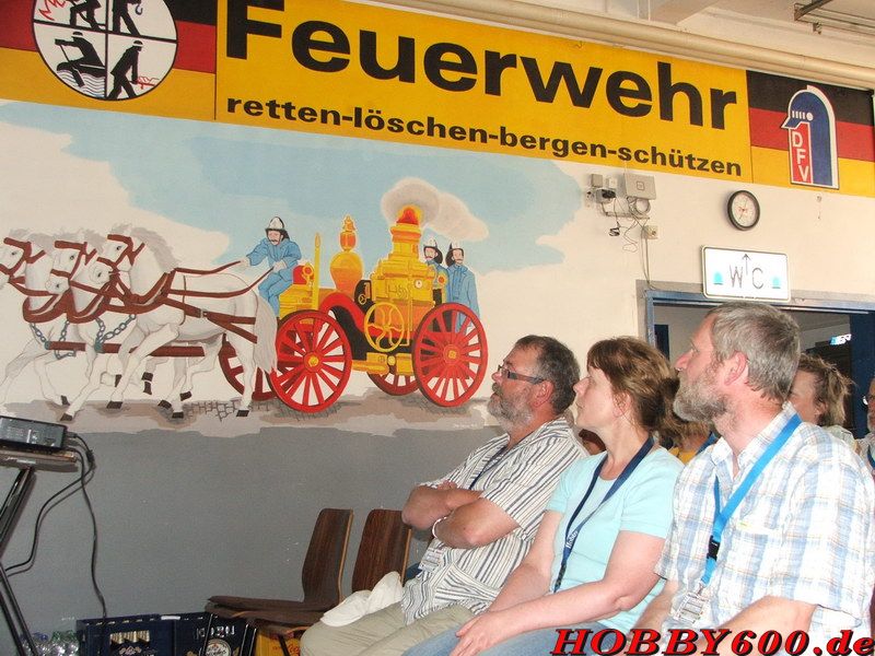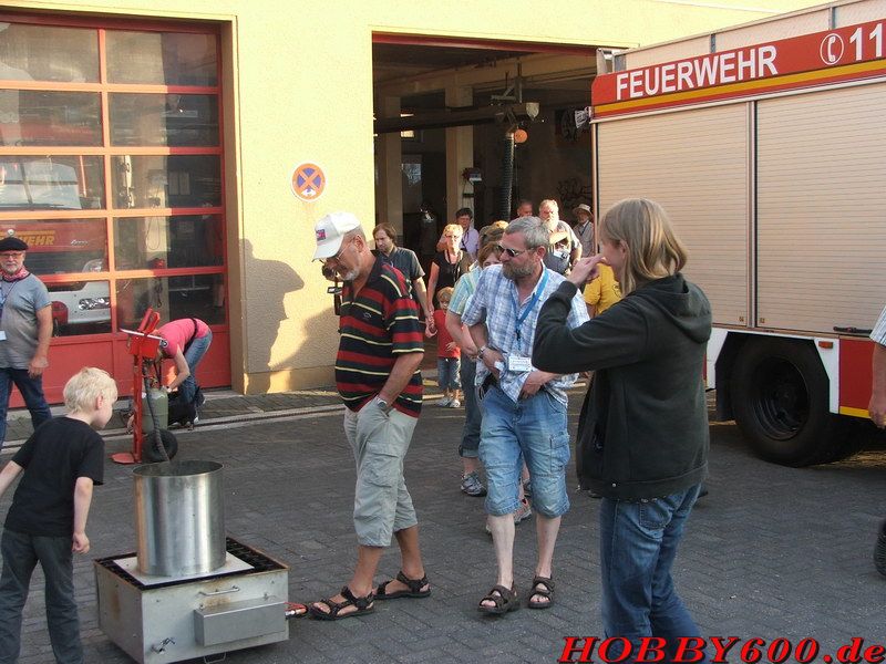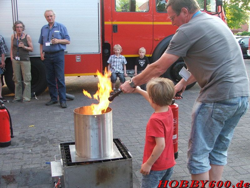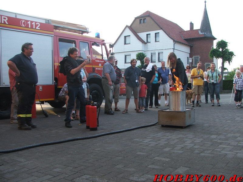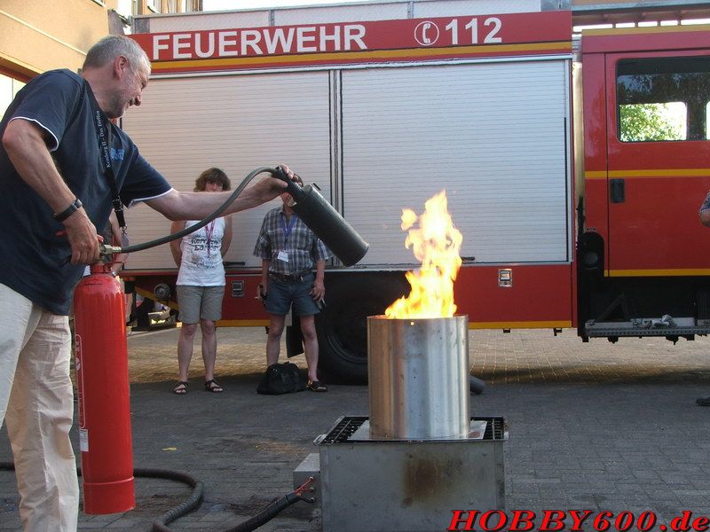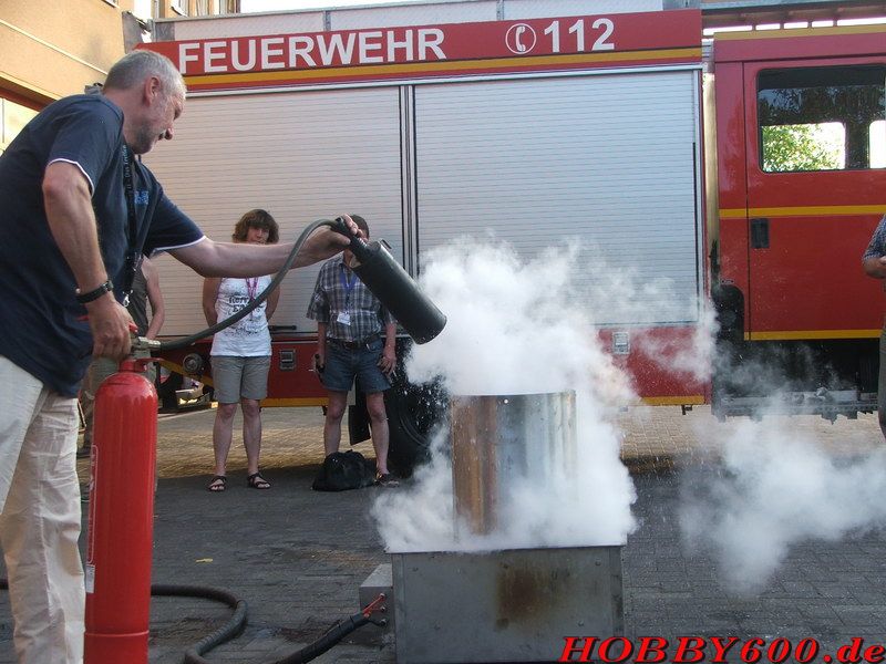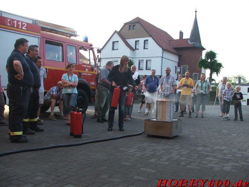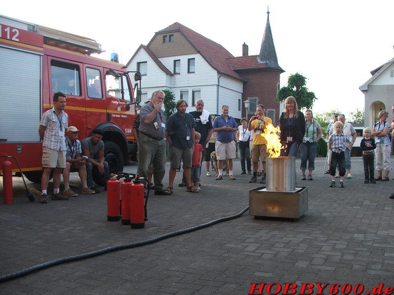 Für den Abend hatten wir uns bei der Freiwilligen Feuerwehr angemeldet. Auf Grund einiger Ereignisse in der Vergangenheit ließen wir uns von den Fachleuten über die Entstehung von Bränden in Haushalt und Fahrzeug und über die Brandbekämpfung informieren. Neben einem theoretischen Teil stand auch eine praktische Übung auf dem Programm. Jeder (der wollte) konnte an der Übungsanlage mal ein Feuer löschen, die anderen löschten dafür den eigenen Durst oder besichtigten die Feuerwehrfahrzeuge.