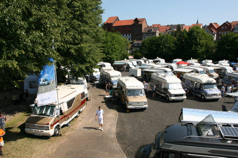 Auf das Wetter hatten wir keinen Einfluss, aber es trug viel zur positiven Stimmung bei. Der Stellplatz in Bad Sooden- Allendorf ist für Wohnmobil- Treffen sehr gut geeignet. Die Unterstützung durch die Vertreter der Stadt bei der Planung und Durchführung des Treffens waren Spitze; ob Frau Holle, Stadtführer, Sammeltaxi oder ganz einfach nur Grill und Toiletten – es gab nichts zu meckern. Die Unterstützung durch die Feuerwehr war ebenfalls Super. Hier müssen wir uns besonders bedanken, da die Drehleiter extra für unsere Aktion bei den Kollegen in Witzenhausen ausgeliehen wurde.