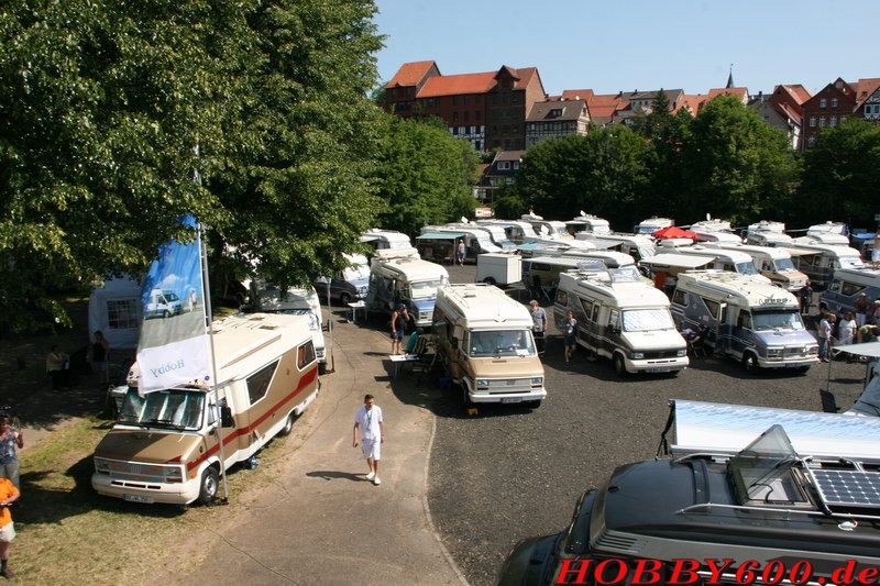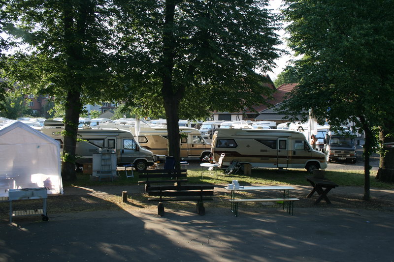 Doch von Anfang an: Die Stadtverwaltung BSA hatte den rechten Teil des Platzes für uns reserviert. So konnten sich die Fahrzeuge, die bereits am Mittwoch anreisten in einen großen Kreis stellen. Besonders freuten wir uns über das Ehepaar Straßberger vom Freundeskreis Hobby 600, die uns mit ihrem Besuch überraschten. Nachts um ½ 2 Uhr kam der letzte Hobby 600 und wurde natürlich noch standesgemäß begrüßt.