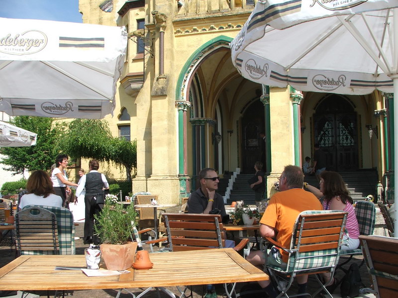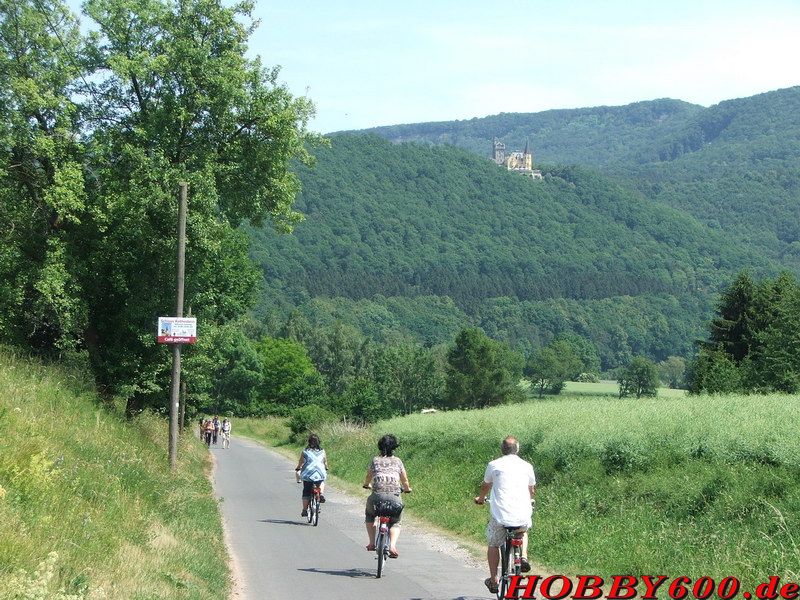 Gut, dass der Mensch schnell vergisst. So auch die Radfahrer. Vergessen waren die Strapazen des Anstiegs; es ging bergab. Vorbei am Brunnen vor dem Tore war Schloss Rothestein unser nächstes Ziel – natürlich wieder auf einem Berg. Dafür warteten nach erneutem Anstieg Kaffee und Kuchen bei fantastischer Aussicht auf uns….und zurück zum Stellplatz ging es wieder nur bergab.